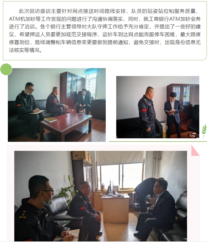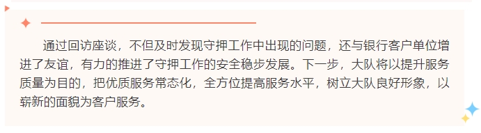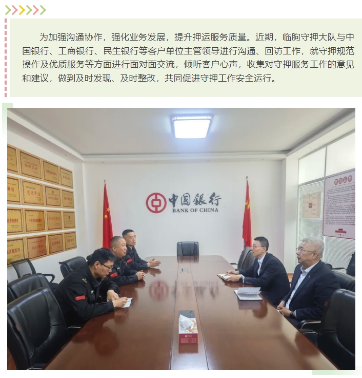 “聚焦客戶需求 提升服務(wù)質(zhì)量”—臨朐守押大隊積極開展銀行客戶單位走訪工作